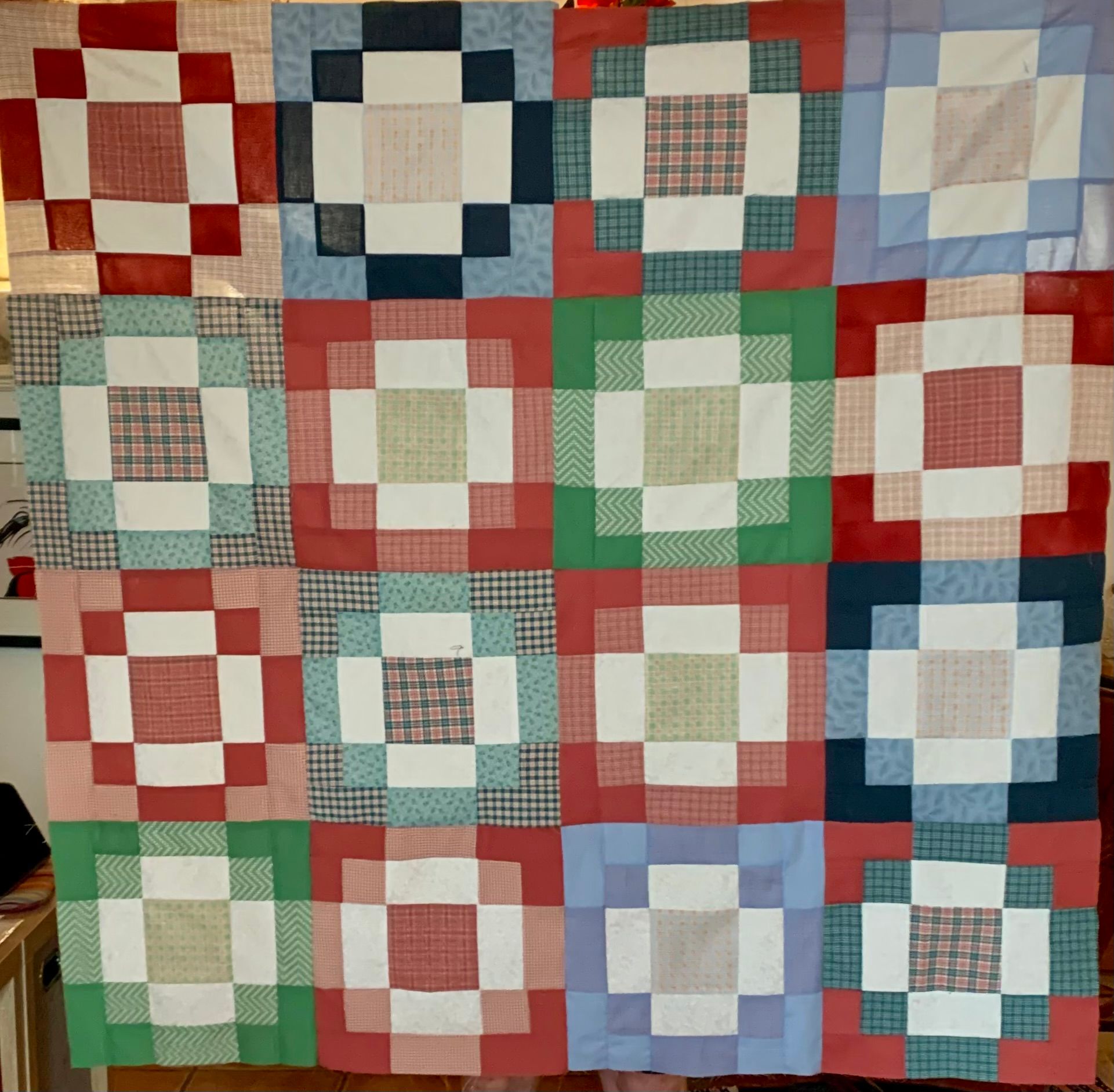 These two quilts were made from fabric donated to me by a friend who also puts her creative flair to good use in creating stitched, knitted or crocheted items for various charities.