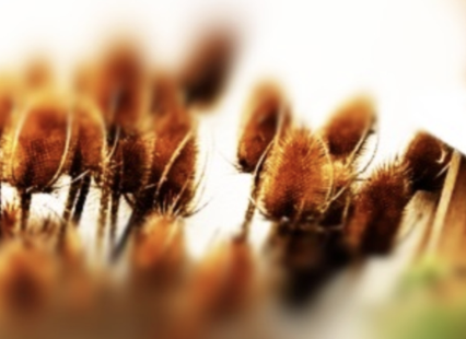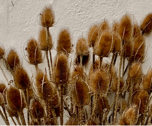 Stage 2: I chose to crop the image and get rid of my garden detritus and just show the seed heads themselves against the stone wall.