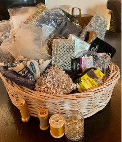 The photo below is often the most exciting part of a project - gathering fibres, threads, beads and found objects and "auditioning" them to be part of the project.